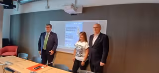 El alcalde de Bilbao, Juan Mari Aburto, el secretario y patrono de la Fundación Columbus, Javier García, y la presidenta de la Asociación CTNNB1, Estíbaliz Martín, han presentado este martes en Bilbao este evento de carácter solidario, que en su edición de este año tendrá como uno de sus proyectos centrales el primer ensayo clínico en terapia genética para la enfermedad CTNNBI, previsto para finales de 2025 o principios de 2026.