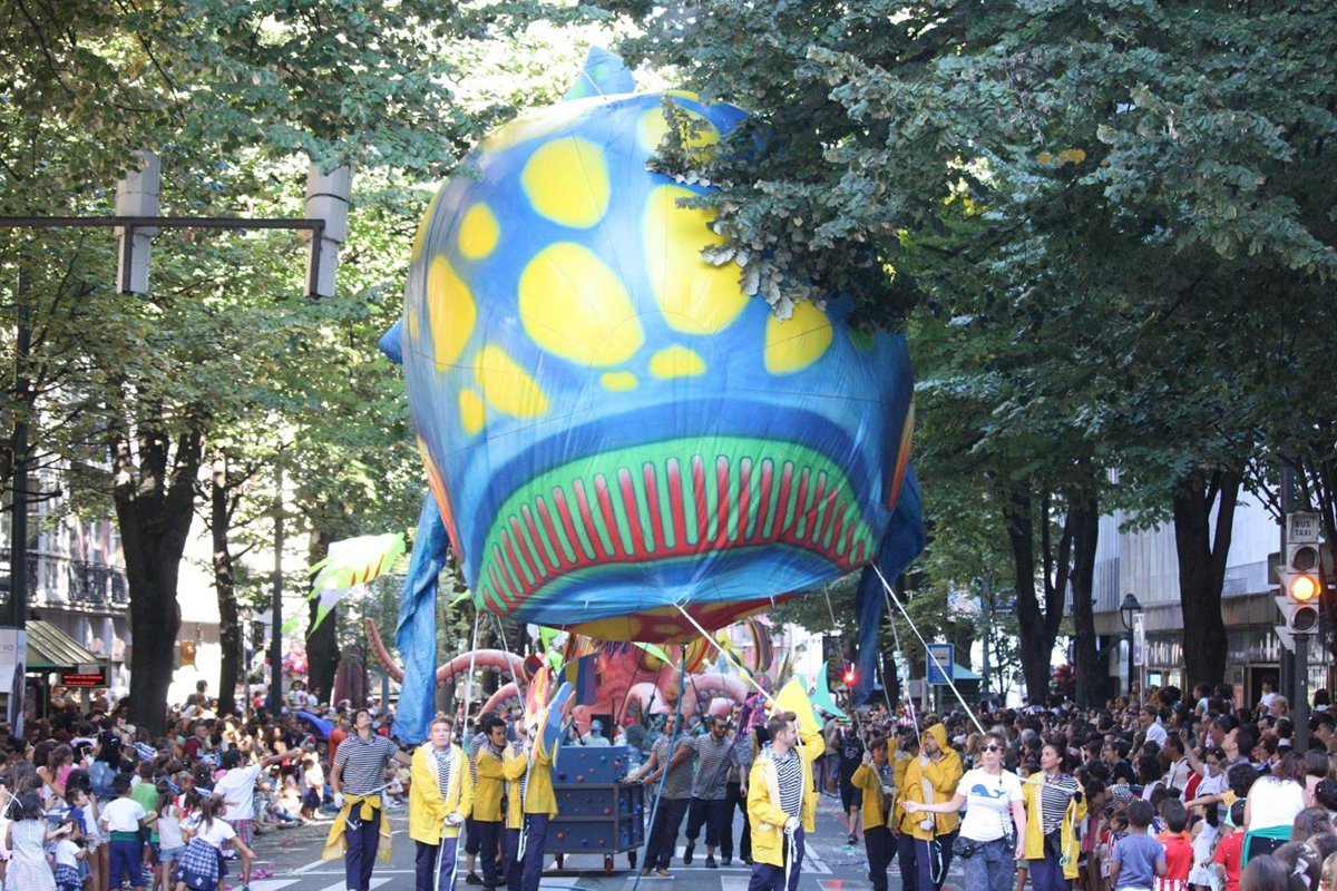Todos ellos desfilarán al ritmo de la música, acompañados por artistas y espectáculos de animación. La compañía de percusión Trokobloko encabezará el desfile, que contará con dos "barcos rodantes que navegarán por la Gran Vía bilbaína" con 30.000 globos, confeti, serpentinas y otras "sorpresas" que se distribuirán entre el público participante en la fiesta, han explicado sus organizadores.