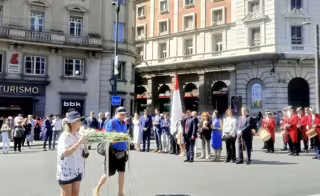 La ofrenda floral ha concluido con una jota interpretada por los dantzaris, a la que se han sumado algunos ciudadanos presentes en el lugar.