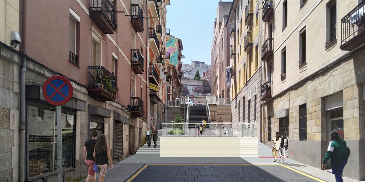 Se generarán rampas con pendientes del 8% y en la zonas donde no sea posible se sustituirán los actuales escalones por nuevos que garanticen el cumplimiento de la normativa en materia de accesibilidad. Se acondicionarán asimismo zonas estanciales y nuevos parterres entre la rampa y las escaleras de esta calle. Todos los tramos de escaleras y las rampas se dotarán de pasamanos y nuevas barandillas.