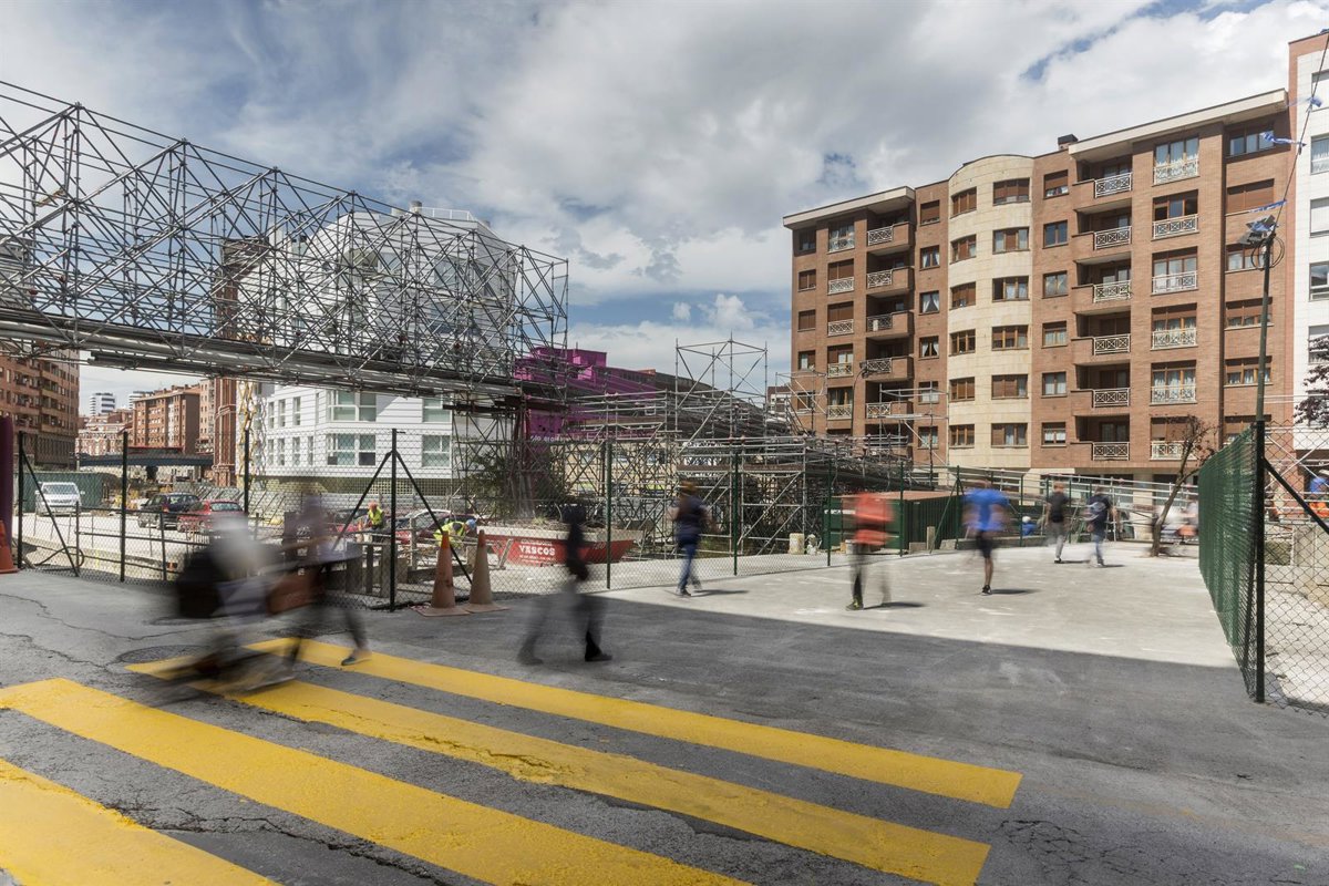 Bilbao Ría 2000 ha puesto en funcionamiento este martes un paso peatonal a ras de suelo entre las calles Jaén y Doctor Díaz Emparanza que permite dejar en desuso la pasarela metálica de Irala que ha unido ambas calles para los viandantes mientras han durado las obras de soterramiento de la línea de mercancías de Adif-Ancho Métrico.