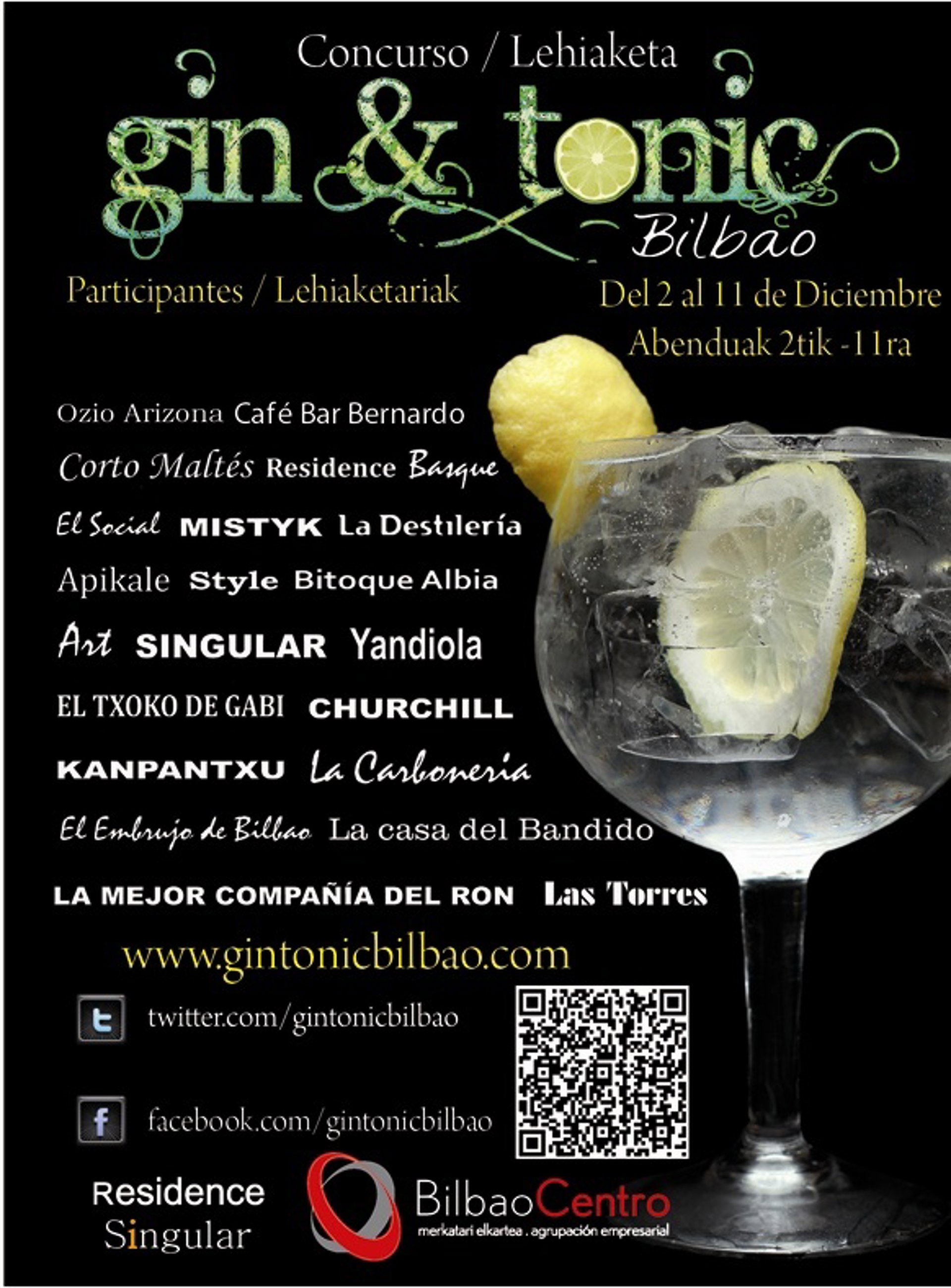 La Agrupación Empresarial BilbaoCentro ha convocado la primera edición del concurso de gin-tonic, que tendrá lugar desde este viernes, 2 de diciembre, hasta el domingo día 11, con la participación de 22 locales hosteleros de referencia del centro de Bilbao.