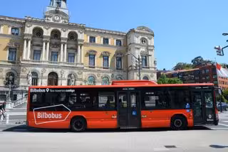 Archivo - Imagen de un Bilbobus pasando ante el Ayuntamiento de Bilbao. - AYUNTAMIENTO DE BILBAO - Archivo