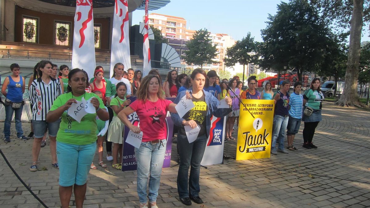 En una comparecencia pública que ha tenido lugar en el kiosko del Arenal, donde se han concentrado representantes femeninas de todas las comparsas bilbainas, la comisión ha recordado que "vivimos en una sociedad que impone a las mujeres a cuidarse de no ser agredidas pero en cambio no exige a los hombres no agredir".