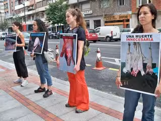 En una concentración frente a la Delegación del Gobierno vasco en Bilbao, varios activistas, que mostraban fotografías de cerdos vivos y muertos, han manifestado su rechazo a la reapertura del citado matadero vizcaíno, que califican como "centro de explotación animal".