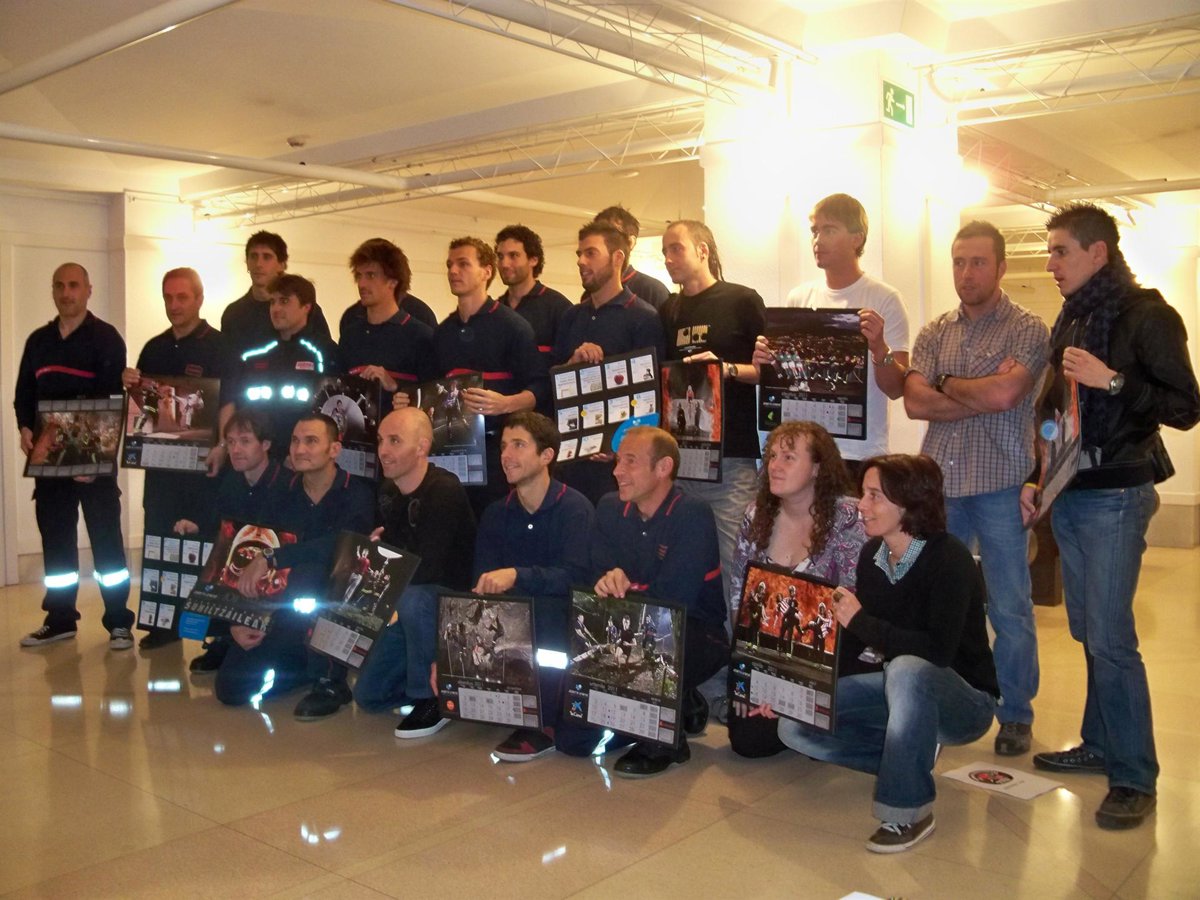 Los bomberos de la Diputación de Bizkaia han presentado este viernes en Bilbao su primer calendario 2011, que desde este viernes ponen a la venta a 6 euros y del que han sacado una tirada de 15.000 ejemplares, en el que han participado destacados deportistas vascos, como Igor Antón, Virginia Berasategi, la trainera de Kaiku, Javi Salgado o Fernando Llorente, entro otros, y cuyas fotografías han sido realizadas por la Asociación Fotográfica 'Denbora' de Barakaldo de manera altruista.