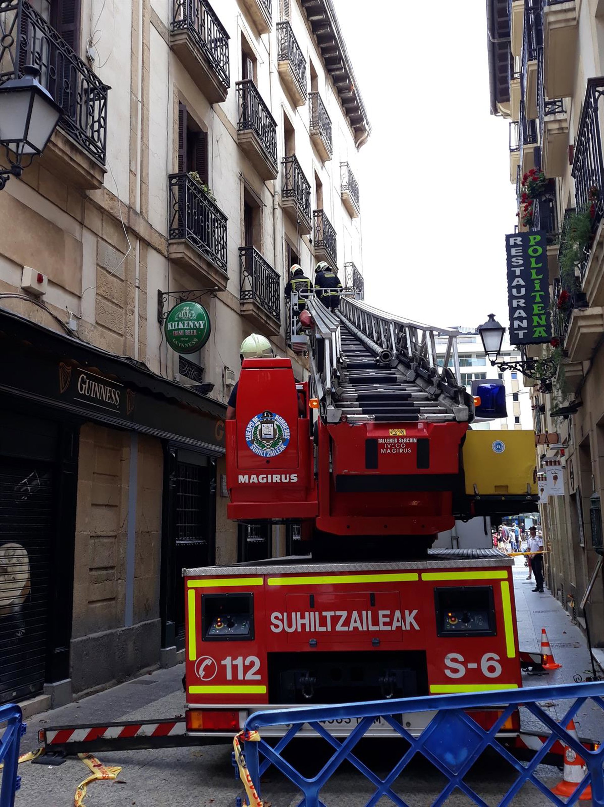 Los Bomberos de San Sebastián están retirando el enrejado del balcón de un edificio de la calle San Jerónimo de San Sebastián del cual el pasado sábado se desprendió una parte.