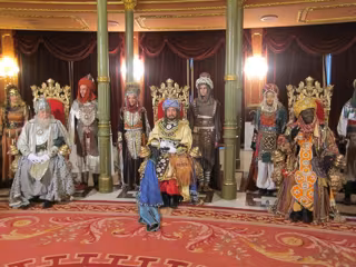 Sobre las 20.10 horas, las niñas y niños será recibidos en audiencia en el Salón Árabe. Para que la espera para saludar a Melchor, Gaspar y Baltasar se haga más amena, se ha previsto un grupo de animación que juegue con las familias que hagan cola.