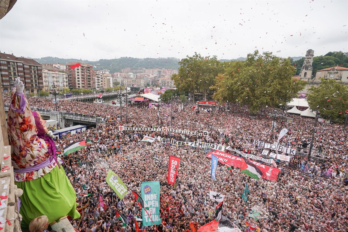 Cientos de personas durante el comienzo de la Semana Grande de Bilbao 2025, en el centro de la ciudad, a 16 de agosto de 2025, en Bilbao, Vizcaya, País Vasco (España). - Iñaki Berasaluce - Europa Press