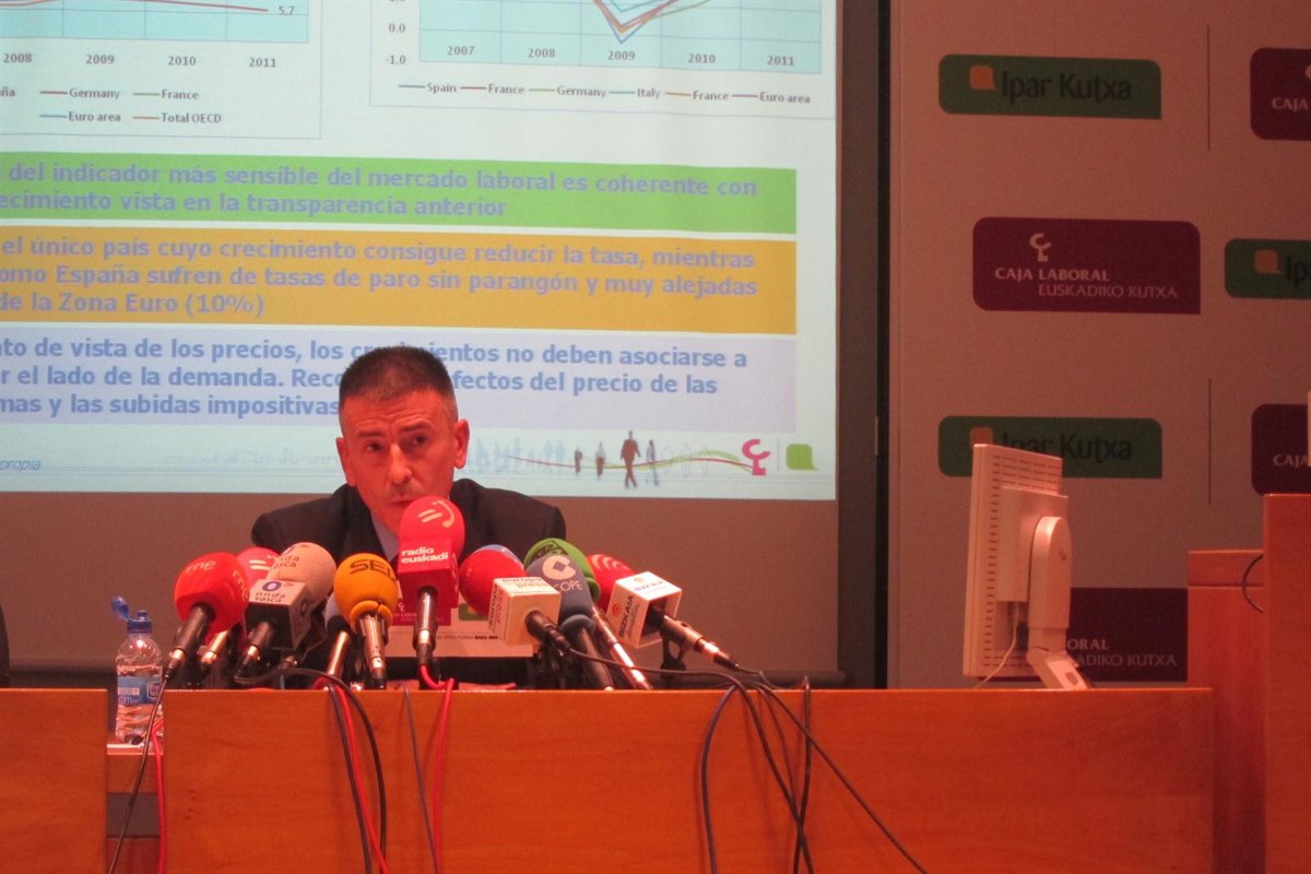 Caja Laboral-Ipar Kutxa prevé que Euskadi cierre 2013 con una tasa de desempleo del 16 por ciento y una caída del PIB del 1 por ciento, según los datos del Estudio de Coyuntura Económica realizado por la entidad y que pueden variar en función de que finalmente España pueda solicitar el rescate, que da "la impresión de que será una realidad" y de las condiciones que se le impongan.