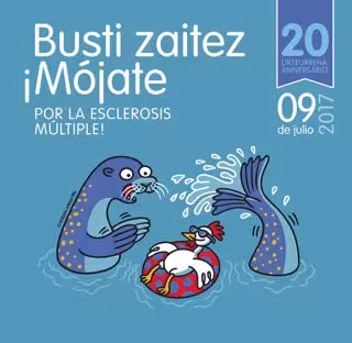 La imagen de esta edición número 20 de 'Busti Zaitez-Mójate' por la Esclerosis Múltiple, así como el merchandising de la misma, ha sido diseñada por Katuky Saguyaki, la marca del pamplonés Mikel Urmeneta, que también estará en este acto central, que tendrá lugar a las 12.00 horas en la playa de Ereaga de Getxo.