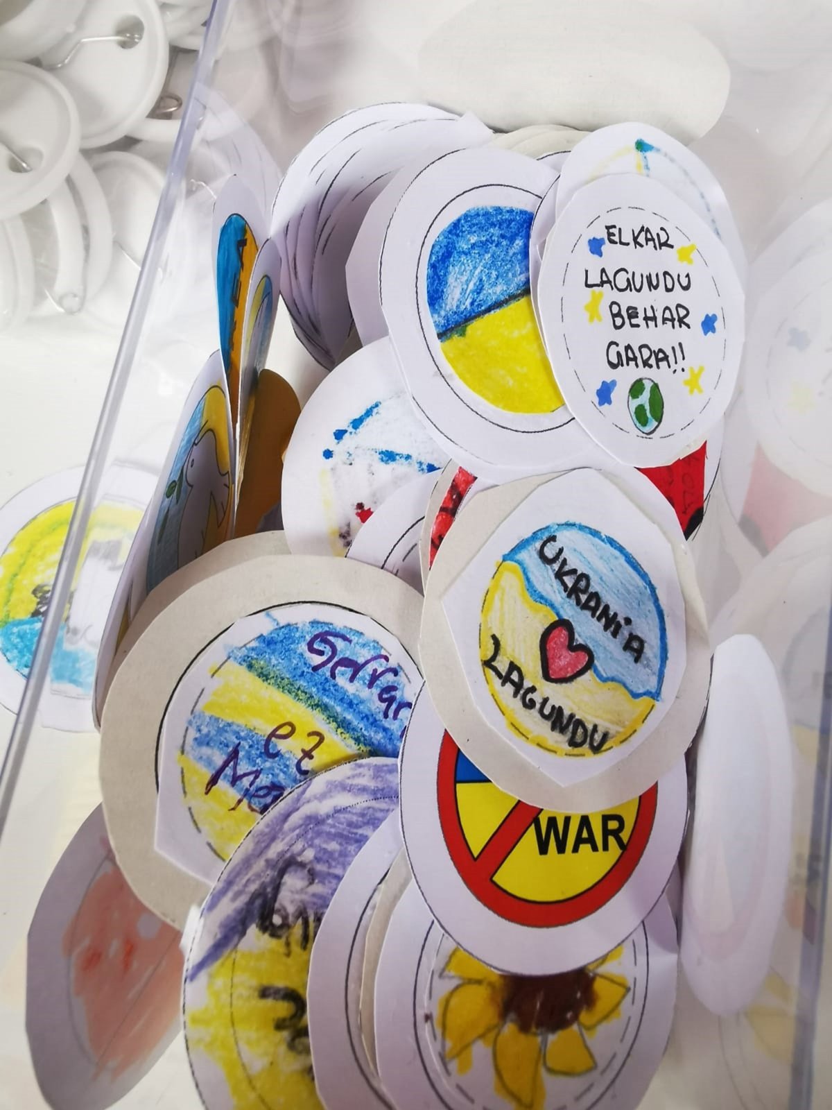 La venta de las chapas, en las que predominaban los símbolos pacíficos, banderas de Ucrania y mensajes como 'No a la guerra', recaudó un total de 1.360,23 euros, una cantidad que después el Consistorio ha doblado, alcanzando así un donativo de 2.720,46 euros para la Asociación Chernobil.