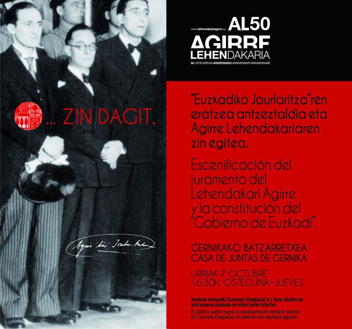 La Casa de Juntas de Gernika (Bizkaia) acogerá este jueves la escenificación del juramento del lehendakari, José Antonio Agirre, y de la constitución del "Gobierno de Euzkadi".