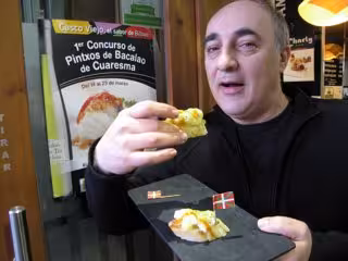 "El pintxo de bacalao no puede faltar en nuestras barras porque es uno de los pintxos más jugosos y demandados", ha explicado el presidente de la Asociación de Comerciantes del Casco Viejo, Alberto Gómez.