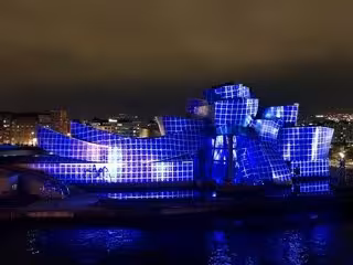 El espectáculo de música, luz e imágenes, diseñado para "celebrar el cumpleaños del Museo con la ciudadanía, se ha proyectado durante los cuatros días del Puente del Pilar sobre la fachada de titanio del Guggenheim.