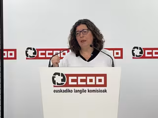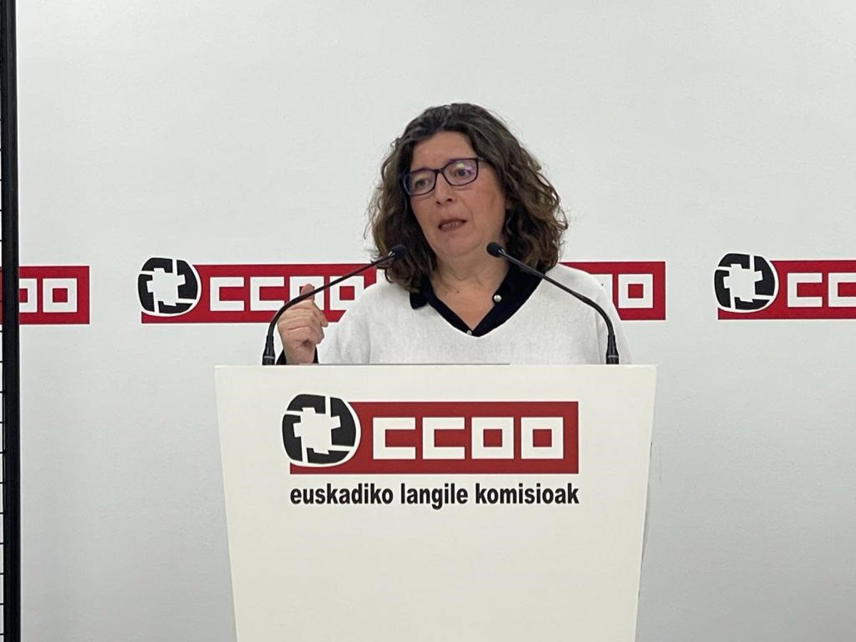 Archivo - La secretaria general de CCOO Euskadi, Loli Garcia, en una comparecencia de prensa - CCOO - Archivo