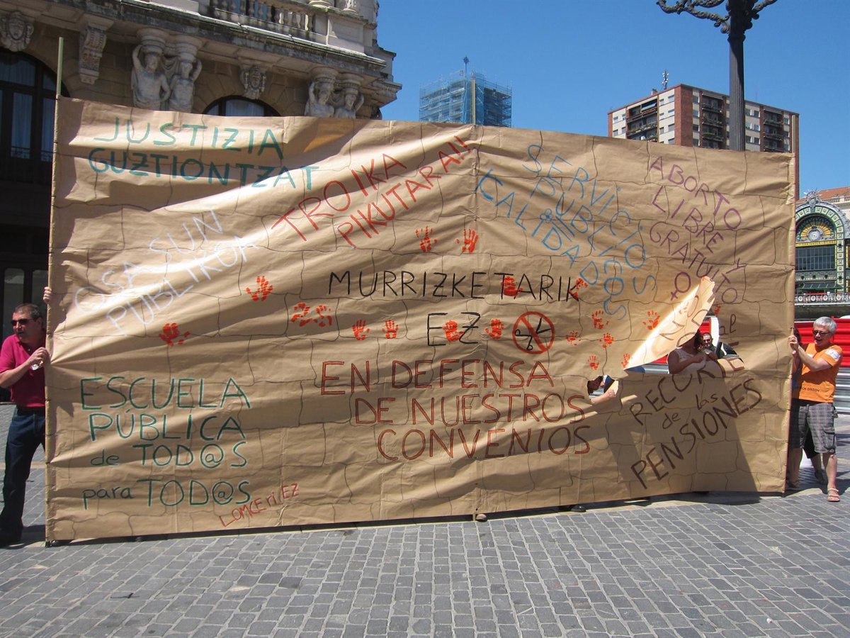 En su intervención, el secretario general de UGT-Euskadi, Raúl Arza, ha señalado que la movilización de este domingo se hace para reivindicar "una Europa y una Euskadi por y para los ciudadanos" y para exigir "políticas al servicio de los ciudadanos, que busquen el progreso y el bienestar social y no al servicio de los banqueros y los mercados".