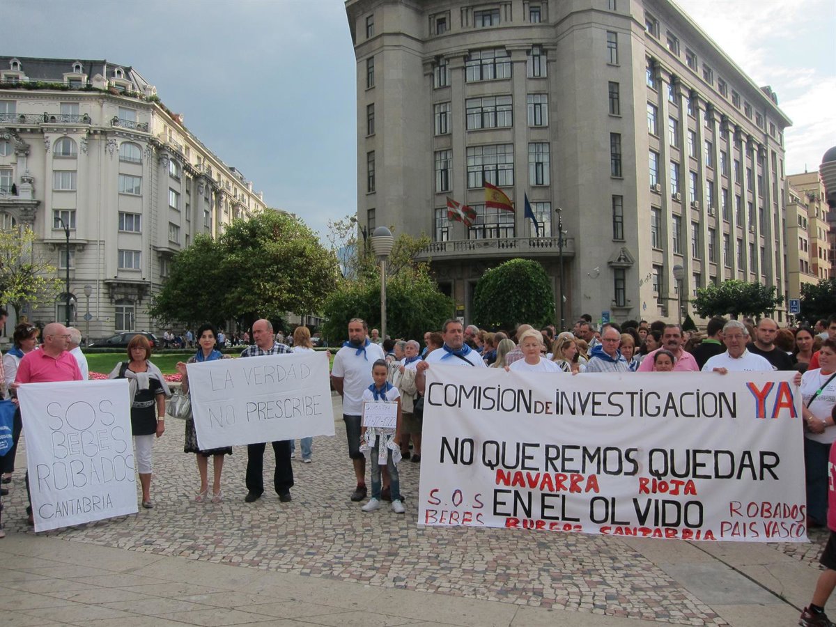 Alrededor de un centenar de personas se ha concentrado este sábado por la tarde en Bilbao, convocados por los colectivos de SOS Bebés robados de Euskadi, Navarra, Burgos, Cantabria y La Rioja, para protestar por el archivo sin investigación judicial de gran número de las denuncias interpuestas por el robo de bebés a sus padres legítimos en numerosos lugares del Estado, entre ellos el País Vasco.