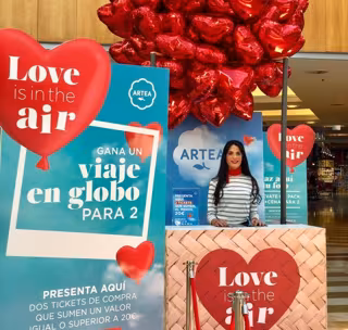El Centro Comercial Artea de Leioa (Bizkaia) ha organizado, para celebrar el día de San Valentín, el concurso 'Love is in the air', que tendrá como premio un vuelo en globo de hora y media de duración para dos personas.