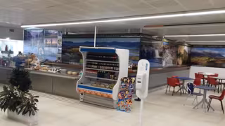 La oferta de Indesa para la cafetería contempla la próxima renovación del mobiliario del local, un nuevo expositor de productos, y la instalación de una plancha para ofrecer más variedad en la oferta hostelera y poder incorporar sándwiches y bocadillos calientes.