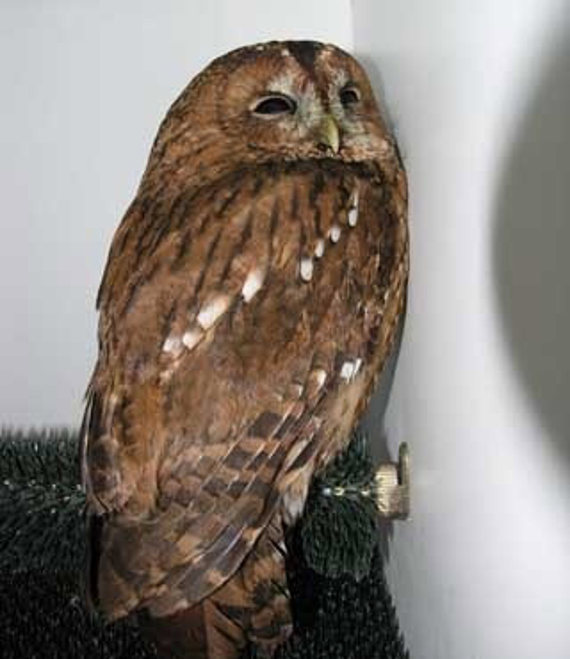 El ejemplar, una hembra de cárabo común Strix aluco de 660 gramos de peso, ingresó en el C.R.F.S.B. el pasado lunes con el referido cuadro, del que se ha recuperado favorablemente. La exploración clínica ha revelado que el animal puede que se encuentre en fase reproductiva o tener pollos jóvenes.