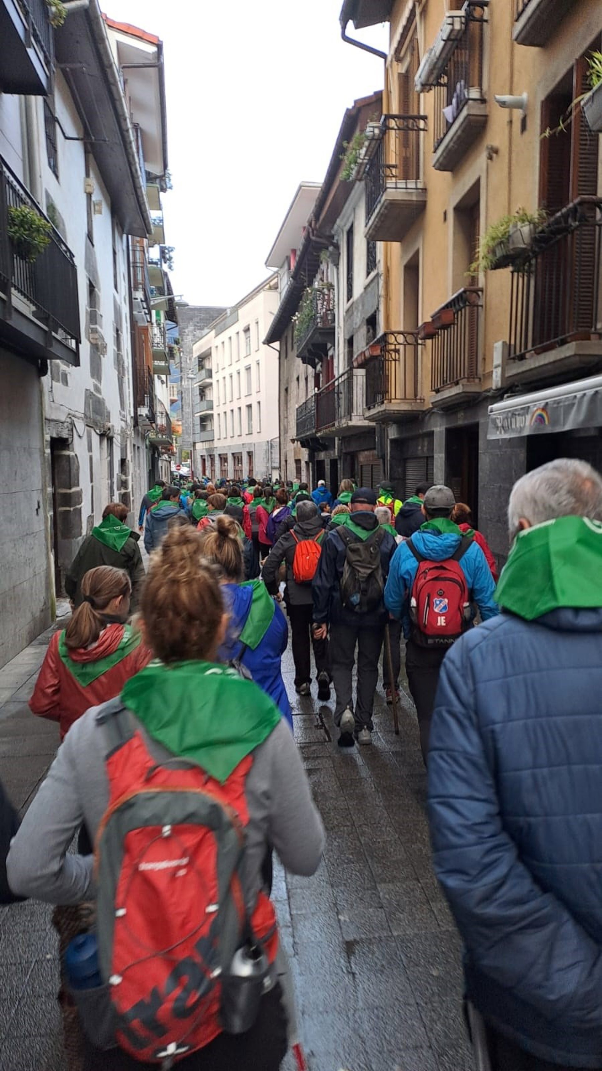Según han destacado los organizadores, las calles de Villabona se han "llenado de solidaridad" y se han "teñido de verde en esta primera edición de la 'mendi marcha' en esta localidad.