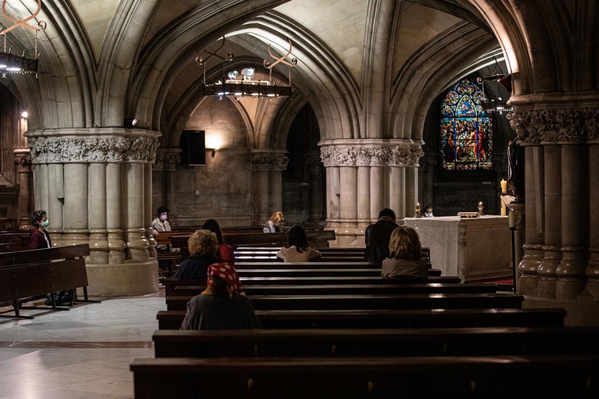 Fieles celebran la Santa Misa en la cripta de la Catedral de María Inmaculada (catedral nueva) en Vitoria durante el día en el que se reabre al público, En Vitoria (Álava, País Vasco), a 11 de mayo de 2020. - Iñaki Berasaluce - Europa Press - Archivo