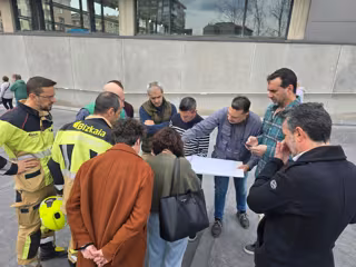 Técnicos municipales y Bomberos inspeccionan la cubierta de las instalaciones deportivas de Lasesarre, en Barakaldo. - AYUNTAMIENTO DE BARAKALDO
