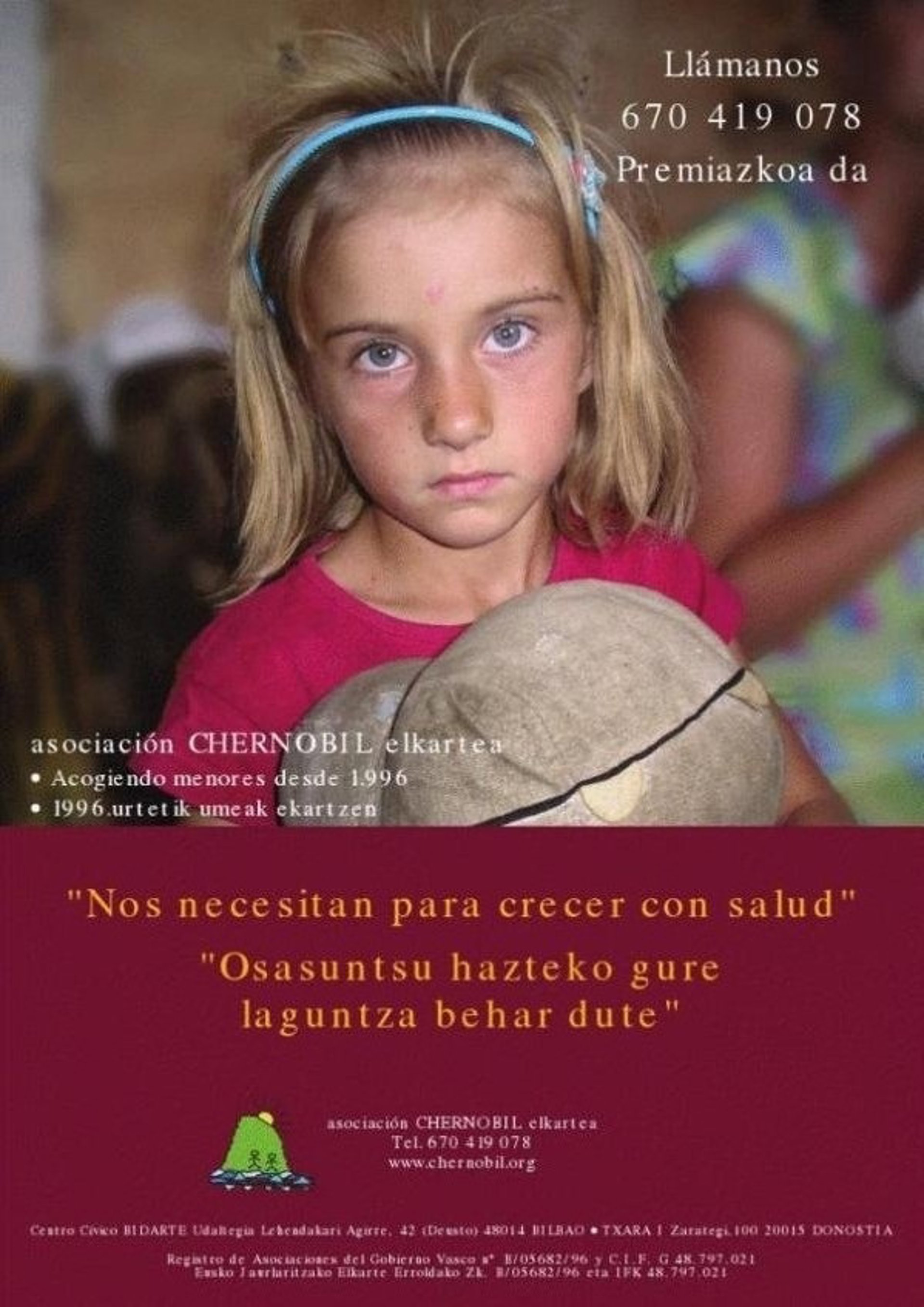 Chernobil Elkartea ha realizado desde 1996 más de 4.500 acogimientos que han beneficiado a cerca de mil menores. Cualquier persona que desee información sobre su Programa de Acogida puede llamar al teléfono 670 419 078 o escribir un correo electrónico a 'chernobil@asociacionchernobil.info'.