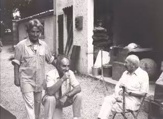 Eduardo Chillida, Pilar Belzunce y Joan Miró en Saint-Paul-de-Vence en 1981 - HANS SPINNER/CHILLIDA LEKU