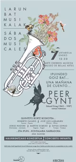 El concierto correrá a cargo del quinteto Bortz, con Roberto Casado (flauta), José Luis Larraburu (oboe), Jorge Nagore (clarinete), Martin Olmedo (fagot) y Sayoa Loinaz (trompa), con la narradora Ana Sarobe.