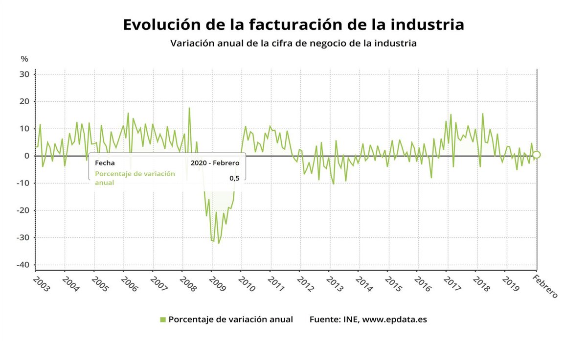 Gráfico de la evolución de la cifra de negocios en la Industria en la media estatal - EPDATA