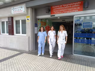 La coordinadora de Enfermería, Estibaliz Argüelles, Jefa de la Unidad de Gestión Clínica de Pediatría de la OSI Donostialdea, Cristina Calvo, y la oncóloga pediátrica Nagore García de Andoin en el exterior del Hospiyal Donostia - EUROPA PRESS