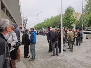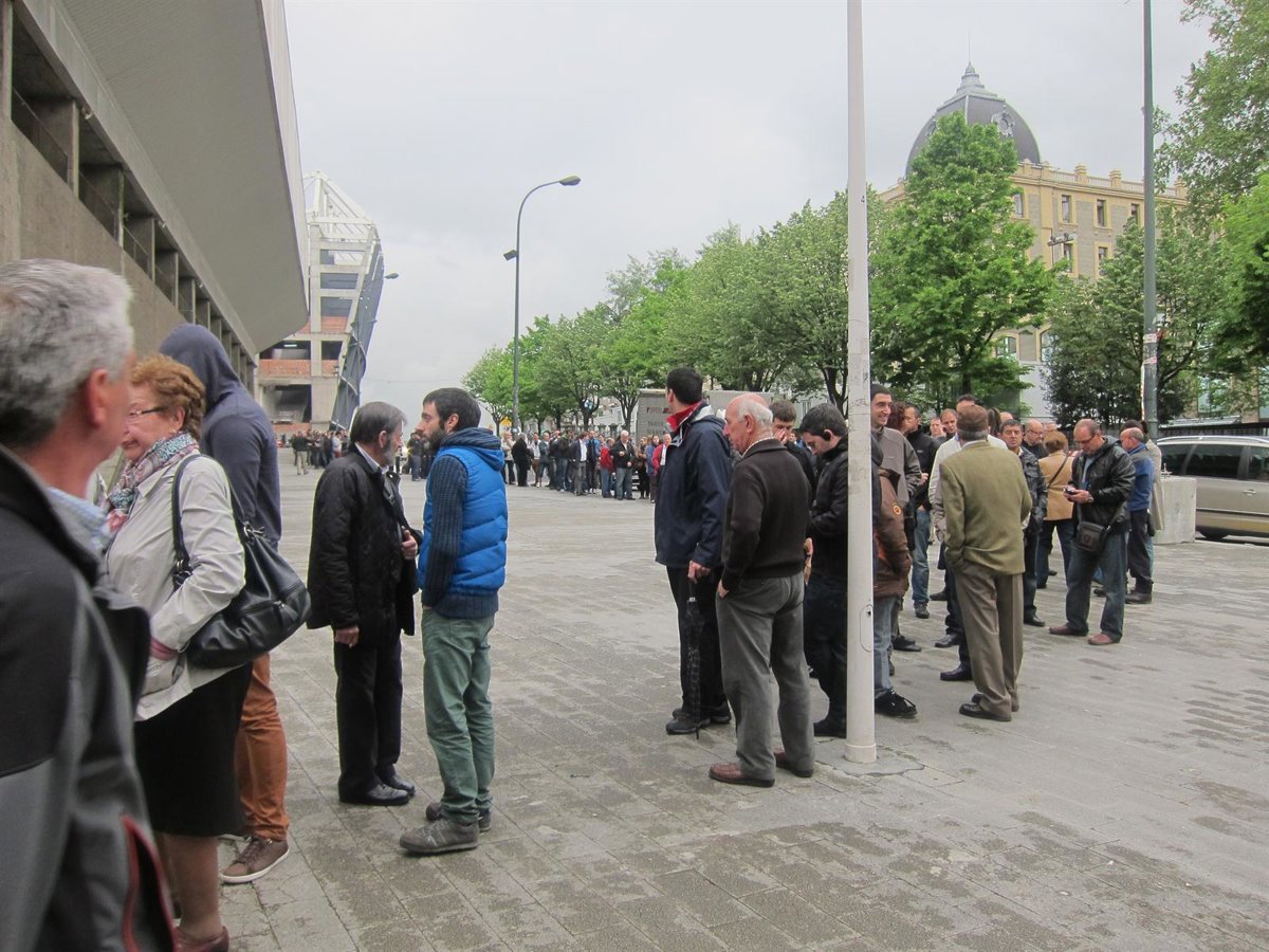 Las taquillas abren a las diez y media de la mañana, pero desde antes de las siete de la mañana ya había gente esperando y la cola llega hasta el nuevo campo de San Mamés.