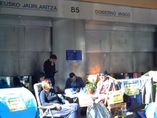 Colectivos sociales vizcaínos como Argilan, Asambleas de parados de Sestao y Barakaldo, Danok Lan de Galdakao, Mujeres del mundo, Sos Racismo, Posada de los abrazos, Elkartzen, Bizitegi y Berri-Otxoak de Barakaldo acamparon esta mañana frente al Gobierno vasco en Bilbao para denunciar los "recortes sociales".