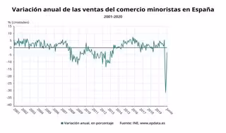 Gráfico con la evolución de las ventas del comercio minorista en España - EPDATA