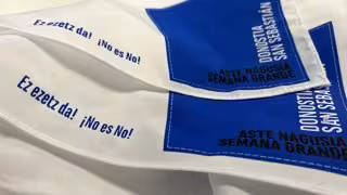 San Sebastián Shops ha informado de que, a través de la Concejalía de Impulso Económico del Ayuntamiento de San Sebastián, el Departamento de Comercio del Gobierno Vasco, Lurraldebus y el Departamento de Cultura de la Diputación foral de Gipuzkoa, repartirá este sábado y domingo 33.000 pañuelos a través del comercio local y el servicio de Lurraldebus a quienes se acerquen a la ciudad, para animar a propios y visitantes a disfrutar de las fiestas. El pañuelo es en blanco con punta en azul, como la bandera de la ciudad. "Muy donostiarra y festivo", ha dicho Millán.