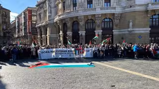 Convocados por Palestinarekin Elkartasuna, la Plaza Arriaga ha acogido una movilización en la que, entre gritos contrarios a Israel y a la actitud de Europa, se han denunciado las "complicidades" por parte de empresas e instituciones vascas.