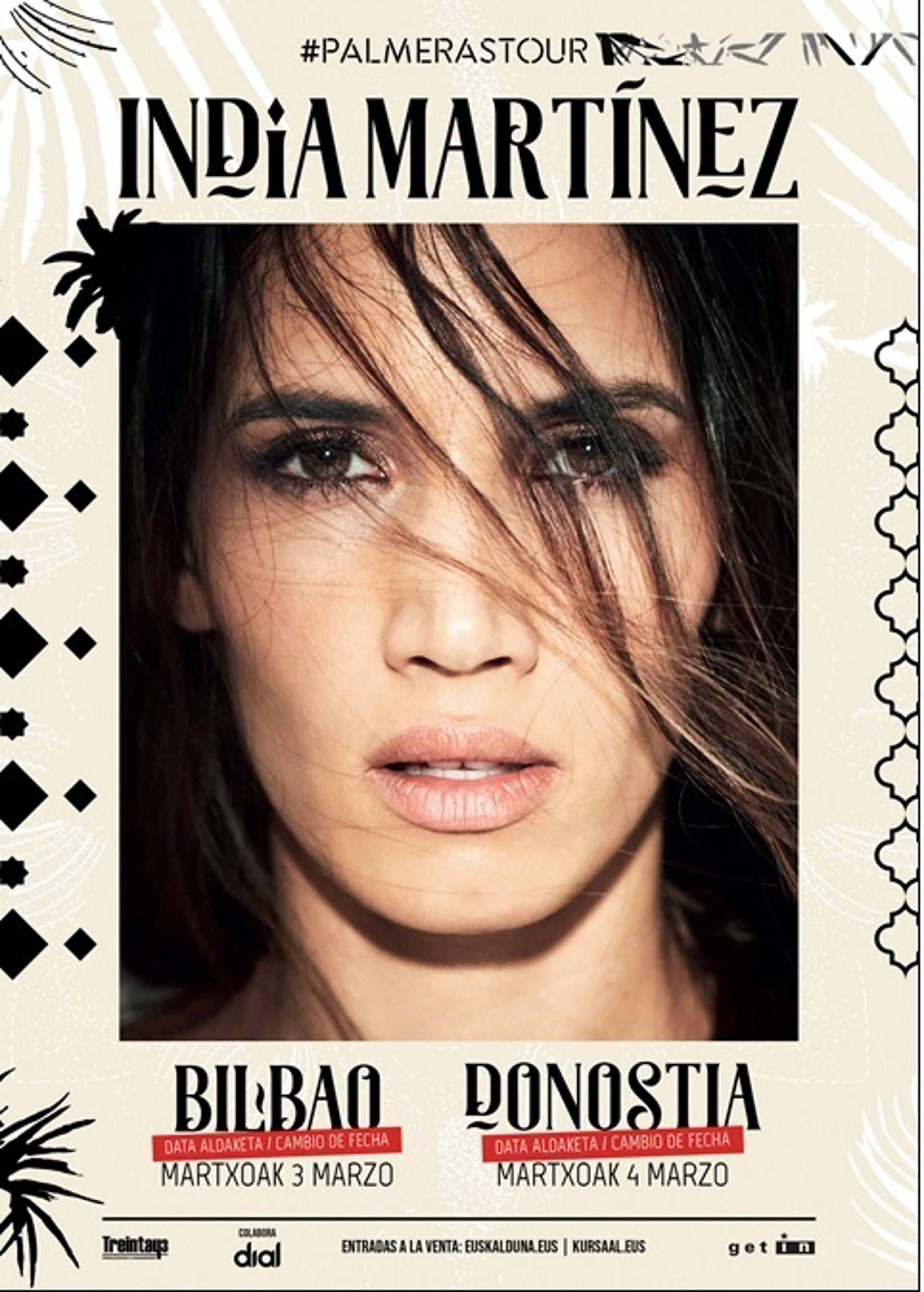La cantante cordobesa India Martínez ha aplazado el concierto que tenía previsto ofrecer el próximo 18 de abril en el Palacio Euskalduna de Bilbao para el día 3 de marzo de 2021, debido a la alerta sanitaria por la expansión del Covid-19.