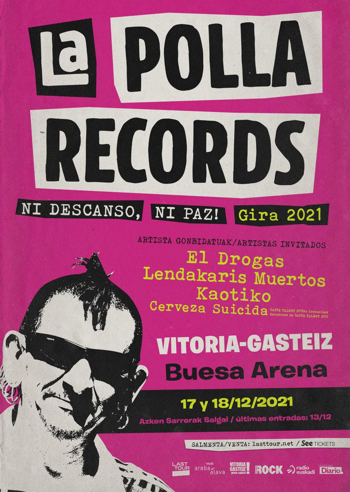 Los dos conciertos que ofrecerá el grupo La Polla Records en Vitoria-Gasteiz los días 17 y 18 de diciembre se trasladan al Buesa Arena ante la imposibilidad de realizarlos en el Iradier Arena por cuestiones técnicas. Las entradas seguirán siendo válidas para el nuevo recinto.