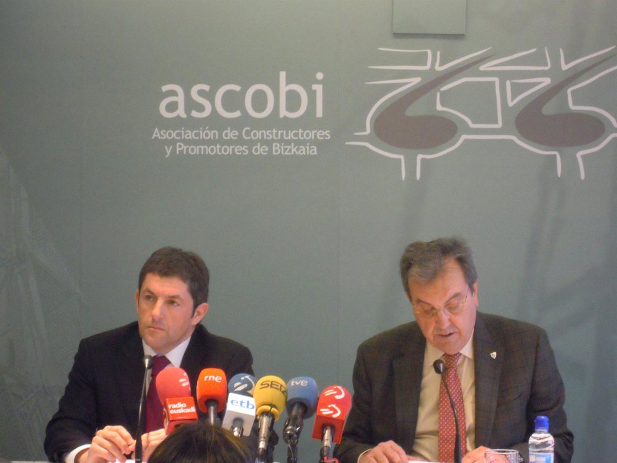En rueda de prensa en Bilbao, el presidente de la patronal vizcaína de la Construcción, ASCOBI, Manu Galíndez, acompañado del secretario general, Iñaki Urresti, han presentado el informa ASCOBI 2012 sobre el sector de la construcción y promoción en el Territorio Histórico de Bizkaia.