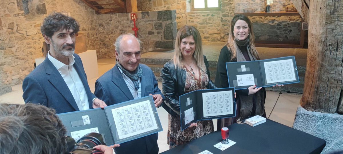 El presidente de la Fundación Eduardo Chillida-Pilar Belzunce, Luis Chillida, y la directora de Filatelia de Correos, Leire Díez, han presentado este martes en el museo Chillida Leku de Hernani (Gipuzkoa) el nuevo timbre, que se enmarca en la serie 'Efemérides'.
