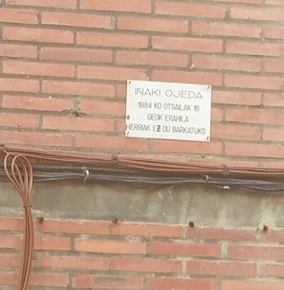 En un comunicado, Covite ha advertido que si el Consistorio no retira esta placa interpondrá una denuncia "por un delito de calumnias". Según ha explicado, la citada placa se encuentra situada en el número 80 de la calle Llanos, en el barrio de Cruces, y ha indicado que en ella puede leerse en euskera la frase 'Iñaki Ojeda. 16 de febrero de 1984. Asesinado por los GEO. El pueblo no perdonará'.
