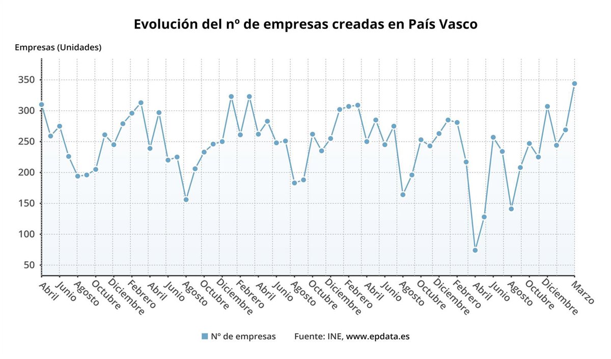 Euskadi registró el pasado mes de marzo 244 sociedades mercantiles, lo que supone un 58,5% más que en el tercer mes de 2020, el primero de pandemia. La disolución de empresas, con 134 casos, también aumentó en este periodo, un 22,9%, según los datos hechos públicos este jueves por el Instituto Nacional de Estadística (INE).
