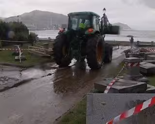 Una brigada especial de limpieza, compuesta por una decena de operarios con tres camiones cisterna, dos tractores-excavadora y una barredora, trabajan con el objetivo de eliminar los residuos de arena, troncos, ramas y otros objetos que el mar ha arrastrado al paseo. Asimismo, con posterioridad, se procederá a la retirada de los trozos de muro derribados como consecuencia de la fuerza de las olas.