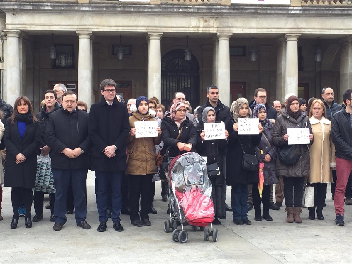 Decenas de personas de la comunidad musulmana de Vitoria han participado este miércoles en la concentración organizada por el Ayuntamiento de la capital alavesa para expresar su repulsa a los atentados de Bruselas, portando carteles escritos en árabe, euskera, castellano e inglés, en los que exigían que los terroristas no actúen en su nombre.