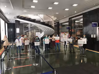 Esta protesta, convocada por LAB, ESK, ELA, UGT, CCOO, SAE y UTESE, se ha producido en el marco de la visita que ha realizado a este centro hospitalario vizcaíno el Lehendakari, Iñigo Urkullu, acompañado de la consejera de Salud, Nekane Murga, y el director general de Osakidetza, Juan Diego, para conocer las instalaciones rehabilitadas para la atención Covid-19.