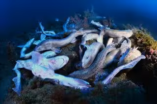Las imágenes capturadas por el equipo de Subacuáticas de la Real Sociedad revela decenas de tiburones gato "arrojados al mar sin ningún sentido, incluso siendo privados de la oportunidad de convertirse en alimento". "Es una pérdida lamentable, no solo para la biodiversidad marina, sino también para la seguridad alimentaria de nuestras comunidades", han lamentado.
