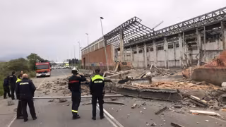 Parte de la fachada de la antigua fábrica MISA, situada en la calle Felipe del Río, en Leioa (Bizkaia), se ha derrumbado esta madrugada por causas que se investigan, aunque no se han producido víctimas personales, según ha informado el Departamento vasco de Seguridad y el Consistorio vizcaíno.