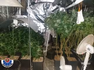 Nada más acceder, se apreciaba un fuerte olor a marihuana y fueron descubiertas, tras una zona habilitada a modo de oficina, diversas dependencias acondicionadas para el cultivo de marihuana. Las mismas estaban provistas de todo tipo de sistemas de iluminación, calor, ventiladores, extractores y otros elementos para el favorecimiento del desarrollo de la plantación.